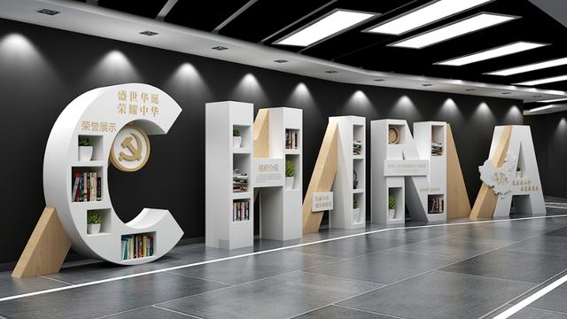 這里給大家簡單講解一下設(shè)計思路:利用CHINA這幾個字母創(chuàng)意點設(shè)計了一款書架除了書洞(架)外,可以設(shè)計一些標語點綴一下,這里細節(jié)部分有用到版圖元素。