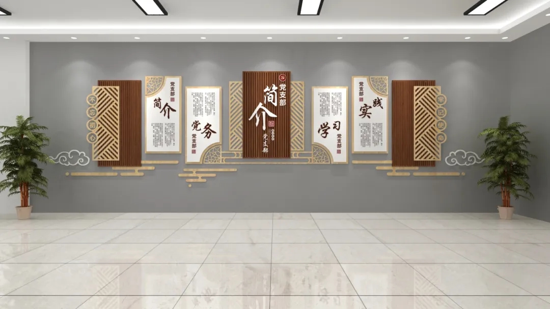 中式木紋黨建展廳設計不但要“紅”出精彩,還要與中國源遠流長的文化內涵相結合,