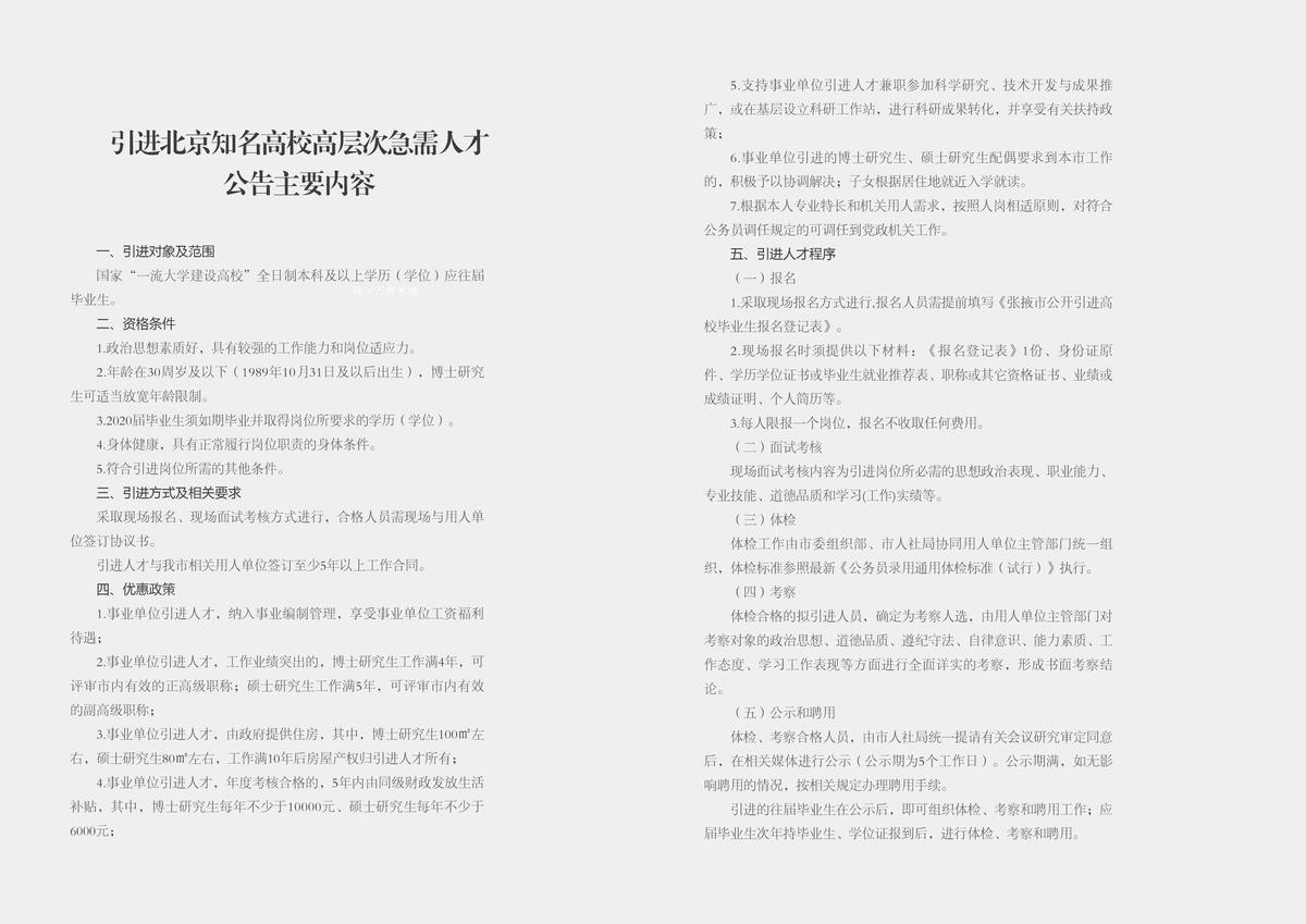 大美張掖引進北京知名高校高層次急需人才推介手冊設計印刷