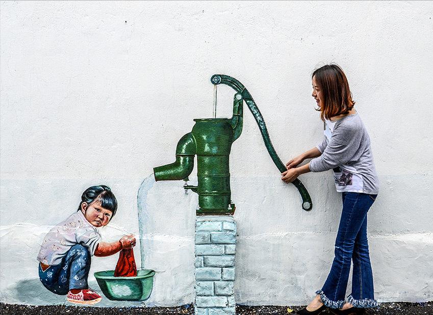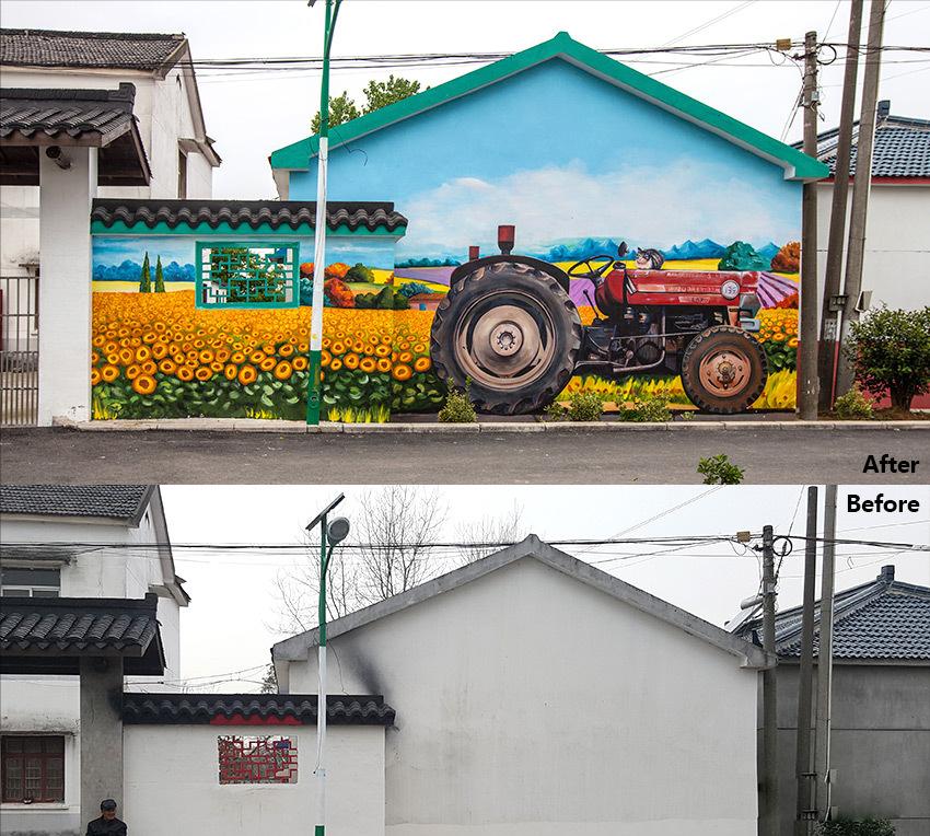讓墻繪陪伴著建筑一起融入歲月,會(huì)更有光陰的韻味。就像銹板一樣,時(shí)間越久,越能綻放銹花!
